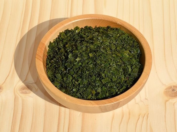 Hinweis: Tägliche Aufnahmeempfehlung der DGE: 200 µg Jod. Dies entspricht 2,2 g getrocknete Ur-Spirulina. Abwaschen, Einweichen oder Kochen reduziert den Jod- & Salzgehalt erheblich.